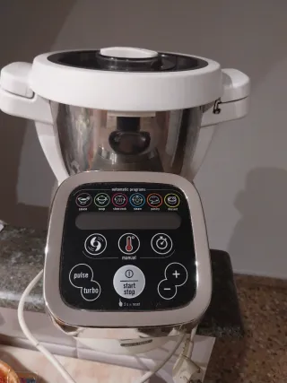 Robot de cocina Monsieur Cuisine Plus en buen estado y muy poco uso. Se vende con todos los accesorios, incluyendo el libro de recetas. Las cuchillas sufrieron un pequeño percance y tienen algunas muescas, pero son totalmente funcionales. (Se venden recambios en Amazon , Aliexpress y la propia web de Monsieur Cuisine)