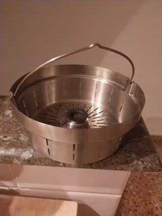 Robot de cocina de acero inoxidable con cuchillas. - Interior de acero inoxidable. - Cuchillas de acero. - Indicador de nivel MAX. -Turbo. -Báscula. -Vaporera para cocinar al vapor. *USADO ÚNICAMENTE DOS VECES, LOS ACCESORIOS ESTAN SIN USAR*