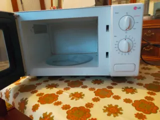 Microondas LG en color blanco, perfecto para tu cocina. - Diseño compacto y funcional. - Mandos giratorios para potencia y tiempo. En muy buen estado