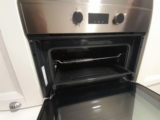 Horno de cocina con acabado en acero inoxidable y puerta de cristal negro. - Panel de control con pantalla digital. - Mandos para temperatura y funciones. En perfeco estado por poco uso