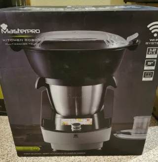 Robot de cocina MasterPRO, modelo Kitchen Robot Multicooker Touch. Se encuentra sin estrenar. - Diseño elegante en negro y plateado. - Pantalla táctil de 5 pulgadas. - Conectividad Wi-Fi. - 12 funciones en 1.