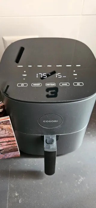 Freidora de aire Cosori de 4.7 litros de capacidad. Su diseño es moderno y duradero. - Color gris - Incluye libro de recetas - Temperatura ajustable 75-230 ℃ - 9 programas de Pantalla LED táctil - Dimensiones: 38,4f. x 27,4an. x 30,7al. centímetros.
