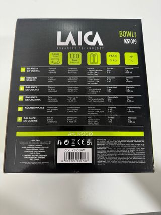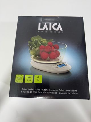 Balanza de cocina Laica KS1019, con un diseño moderno y funcional. - Función TARE. - Capacidad máxima de 5 kg. - Precisión de 1 g. Nueva caja sellada.