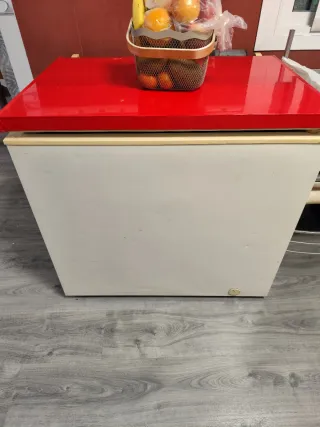 Arcón congelador con una capacidad de 262 litros. Su diseño blanco se adapta a cualquier espacio. - Gran capacidad de almacenamiento. - Tapa superior roja brillante.