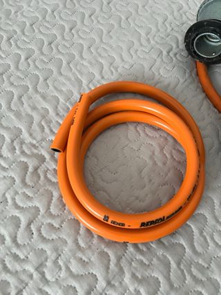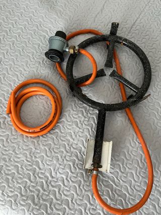 Quemador de gas con todos sus accesorios para su conexión. - Quemador circular de hierro fundido. - Regulador de gas. - Manguera de gas naranja.