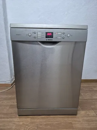 Vendo lavavajillas de la marca Bosch SilencePlus modelo SMS58N88EU/93 de 60cm y libre instalación con las siguientes características: •Clase eficiencia energética: A++ •Consumo de agua modo Eco: 9,5L •Display LCD con botones fisicos •Programas de lavado: 5 •Número máx. servicios: 14 •Motor Inverter EcoSilence •Inicio diferido hasta 24h •Sistema Aquastop •Función VarioSpeed •Función HigienePlus •3° Bandeja VarioDrawer •2° Bandeja regulable en altura •Inox con recubrimiento Antihuellas Muy cuidado, funciona perfectamente y esta como nuevo por dentro, por fuera tiene mínimas marcas del uso, se puede ver y probar sin compromiso.