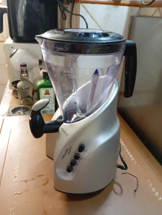 Batidora de vaso Kenwood modelo SB255, ideal para preparar smoothies y batidos. - Panel de control con botones. - Marca: Kenwood. Sus características clave incluyen: Diseño moderno en color plateado y negro. Como nueva. Jarra de plástico transparente con medidas y capacidad de 1,5 litros. Grifo dispensador integrado para servir fácilmente. Potencia de 500 W. Ideal para ingredientes congelados (como se indica en la jarra). Recogida en Villarreal posibilidad de envío previo pago de artículo más gastos por BIZUM.
