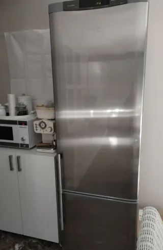 Nevera combi de acero inoxidable en buen estado. Diseño moderno y funcional. - Acabado en acero inoxidable. - Puerta reversible.