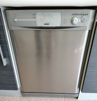 Lavavajillas de la marca Bosch con acabado en acero inoxidable. - Diseño moderno y elegante. - Material resistente y duradero.