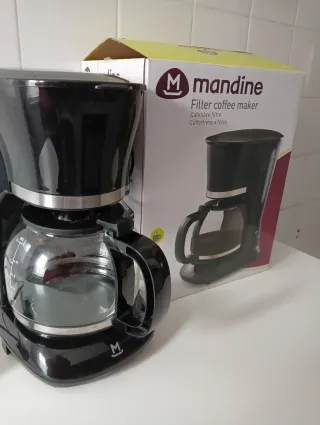 Cafetera de filtro Mandine en color negro. Perfecta para preparar café de forma sencilla. - Jarra de cristal. - Indicador de nivel de agua. - Diseño compacto. - Prácticamente nueva. - Regalo bastantes filtros. - Ticket de compra para garantía en febrero 2025.