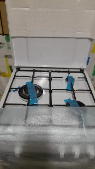 Cocina de gas con horno eléctrico, comprada en 2023.tiene alguna marca por romperse un planto encima. - Encimera de gas con cuatro quemadores. - Para gas natural. Se puede anclar a gas de butano con un adaptador regulador. Sin embargo, no va incluido. Se tendría que comprar a parte. - Horno eléctrico con puerta de cristal.