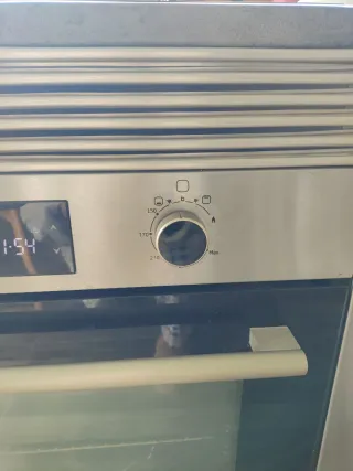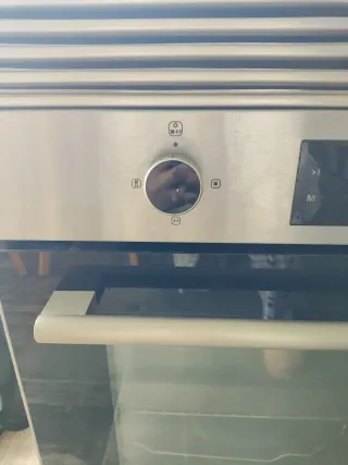 Horno de gas con acabado frontal en acero inoxidable y detalles en madera. - Panel de control con pantalla digital. - Puerta con cristal. - Diseño moderno. Tiene también para hacer pollos a l'ast. Sólo se ha usado un Año,lo cambiamos xq vamos a poner uno eléctrico. Tiene ventilador y para gratinar, encendido automático, tiene la manguera de gas reforzada.tiene modo gratinar superior. Ya está desmontado y limpio.