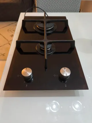 Placa de gas de cristal negro de IKEA. Diseño moderno y elegante para tu cocina. - Dos quemadores. - Mandos metálicos. - Superficie de fácil limpieza.