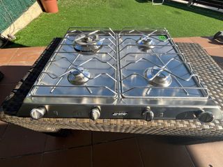 Características principales: • 4 fogones de gas con encendido electrónico en los mandos • Mandos frontales cómodos y accesibles • Acero inoxidable de alta calidad • Seguridad de llama: corte automático si la llama se apaga Estado: ✅ Nunca usada ✅ Guardada durante años con todos sus plásticos y protecciones intactos (espuma, film protector) ✅ Sin rayaduras ni desperfectos Perfecta para: ✨ Cocinas modernas o clásicas ✨ Calidad y diseño SMEG ✨ Hueco módulo de 60 cm. 📦 Incluye todos los accesorios y manual original