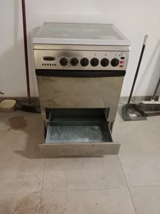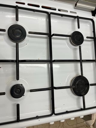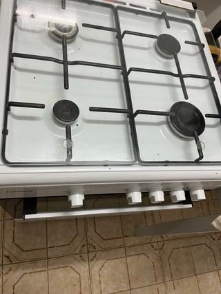 Cocina de gas con horno en funcionamiento general. - Todos los fuegos encienden (uno funciona irregular) - Horno funciona, aunque a veces puede sacar algo de humo - Incluye parrilla y bandeja Detalles a tener en cuenta: Un fogón no prende de forma completamente uniforme Otro fogón no estabiliza bien la olla. 👉 Ideal para segunda vivienda, piso de alquiler, trastero o alguien que quiera arreglarla. 📏 Tamaño compacto (aprox. 50–55 cm de ancho)