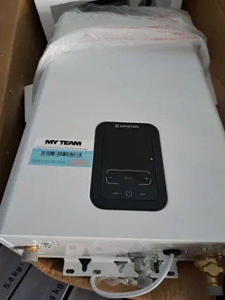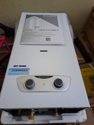 Calentador de agua Ariston para gas natural. Modelo con pantalla digital. completamente nuevo se ha usado 10 dias, regalo todos los tubos necesarios para su instalacion - Marca: Ariston - Tipo de combustible: Gas natural - Pantalla digital - Incluye adhesivo 'My Team Exclusive Club'