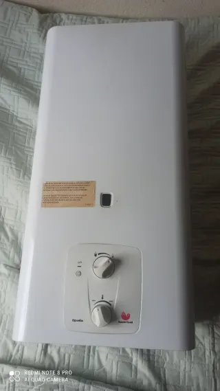 Termo de gas con controles de temperatura y volumen de agua. Solo tiene casi un año - Panel de control con diales. - Pantalla digital. - Etiqueta de servicio técnico oficial.