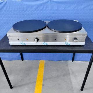 Se vende esta crepera doble a gas de modelo sobremesa perfecta para bares, cafeterías, panaderías, etc. Con esta crepera se puede conseguir un crepe esponjoso perfecto en textura. Crepera a gas butano pero con posibilidad de cambio a gas natural y es completamente nueva a estrenar. Sus características son: •Medidas: 81x41x18 cm •Peso: 25 kg •Material: Acero Inoxidable •Potencia: 8 kw •Gas Butano •Temperatura regulable: 50/300°C •Modelo: Sobremesa •Esparcidor de madera incluido Crepera nueva a estrenar. Crepera para Hostelería. Crepera para bares y restaurantes. Crepera profesional.