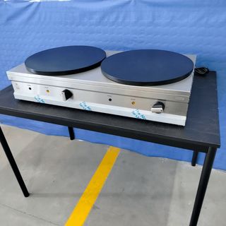 🥩 🍄 Productos y Maquinaria de HOSTELERÍA Y COMERCIO al mejor precio para bares, restaurantes, hoteles… Crepera Eléctrica de Sobremesa en modelo doble ⛽ Recursos: Acero inox + molde de hierro fundido. Temperatura regulable de 50 - 300º. Gas butano (modificable a gas natural). Peso: 24 Kg. Potencia: 5 Kw. Voltaje: 220 V. Accesorios: Esparcidor de madera (no incluído). ☎️ Whatsapp 644698481 // Envíos Gratis - 24-72 horas Medidas: 81x41x18 cm