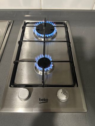 Encimera de gas Beko con dos quemadores. Fabricada en acero inoxidable. - Diseño moderno y funcional. - Mandos frontales para control de la llama. - Parrillas de hierro fundido.
