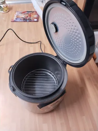 Olla arrocera de acero inoxidable, en perfecto estado. - Ideal para cocinar arroz. - Diseño elegante y moderno. - Fácil de usar y limpiar.