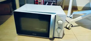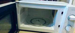 Microondas blanco de la marca Cecotec, con un diseño moderno y funcional. A recoger en Collado Mediano o alrededores. - 700 W de potencia. - 20 litros. - 32f. x 43an. x 22al. centímetros