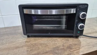Minihorno Cecotec Bake&Toast 100 en color negro. Ideal para preparar tus comidas favoritas. - Puerta con doble cristal. - Bandeja esmaltada. - Rejilla. - Selector de temperatura. - Selector de tiempo.