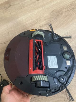 Robot aspirador Lefant T700 en color negro y con detalles en rojo. barre, friega y aspira - Diseño redondo. - Base de carga con adaptadores. - Cable de alimentación