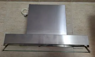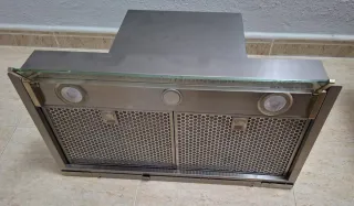 Campana extractora de humos para cocina de la marca Faber para muebles de 60cm con diseño moderno en acero inoxidable. Ha tenido uso. Funciona perfectamente, pero las rejillas de los filtros están deterioradas.