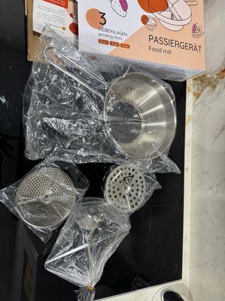 Pasa puré Wenburg para preparar purés, comida para bebés, salsas y más. - Incluye 3 discos de triturado: 2mm, 3mm y 7mm. - Material: Acero inoxidable. Nuevo a estrenar
