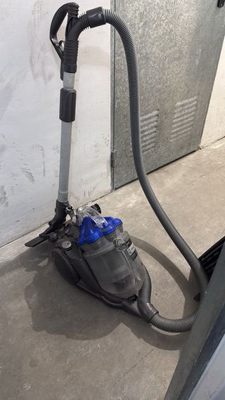 Aspiradora Dyson DC37C con diseño esférico y mango ergonómico. - Color gris y azul. - Depósito transparente. - Manguera flexible.
