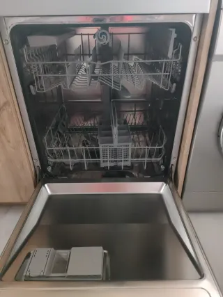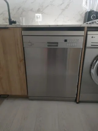 Lavavajillas de acero inoxidable en buen estado. - Diseño moderno y elegante. - Panel de control frontal.