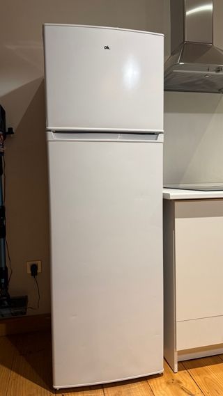 Vendo frigorífico de dos puertas OFK 471 E W, PW58BM en buen estado, con alguna marca en la puerta. Perfecto si buscas una nevera funcional con espacio suficiente para alimentos y congelados. 🧠 Características principales: 📦 Capacidad total: 206 litros, con espacio bien distribuido entre refrigerador y congelador. ❄️ Compartimento congelador 4 estrellas en la parte superior. 📏 Altura aprox. 142,5 cm, compacto pero con buen volumen. ⚙️ Pies ajustables para nivelarlo fácilmente. 🪟 Iluminación interior y estantes ajustables para mejor organización. 🧰 Control de temperatura mecánico, fácil de usar, color blanco.