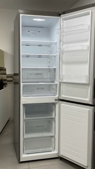 Nevera LG con tecnología No Frost. - Altura de 200 cm x 60 x 60 - Diseño en acero inoxidable. - Puertas reversibles. Vendemos por mudanza, asumimos entrega dentro de Barcelona si se hace hoy 20/12 o mañana, resto de días podéis venir a recogerla, la tapa de al frente de uno de los cajones del congelador está un poco suelto pero funciona perfectamente