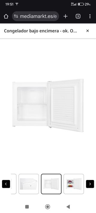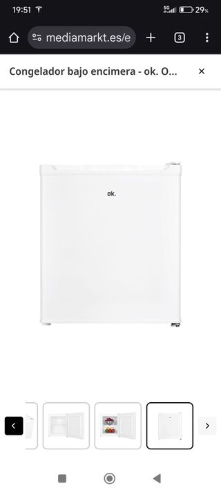 Congelador bajo encimera ok. OFZ 061 E W tiene una capacidad de hasta 33 litros y mide 51 cm de altura. Pies regulables y un sistema de control de temperatura Emisión acústica de 40 db. Lo compré para la comida congelada de uno de mis perros pero ya no puede comer dieta Barf y ya no lo necesito. No se ha usado. Comprado en MediaMarkt. Me costó 111eur.