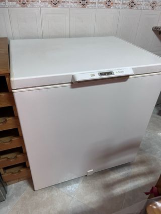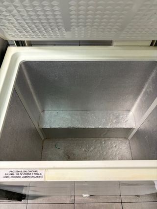 Congelador horizontal IGNIS modelo CE210, F, ancho 80cm, 203L. En muy buen estado, presenta pequeñas imperfecciones estéticas en la parte superior, tal y como se muestra en las fotos, interior en perfecto estado. Tiene pocos años y se compró por más de 300 euros. Más específicaciones en las fotos. Se entrega limpio. Recogida en ubicación señalada. Pago en efectivo o PayPal por adelantado. Envío disponible por Wallapop.