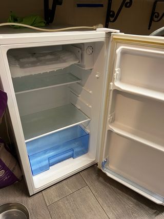 Vendo mini nevera Artica, ideal para habitaciones, oficinas, estudios o segundas viviendas. Funciona perfectamente y está en buen estado, con muy poco uso. Características: Marca: Artica Capacidad aproximada: 80-90 litros Incluye congelador superior, 2 baldas interiores, compartimento para frutas/verduras y estantes en la puerta. Silencioso y de bajo consumo. Diseño blanco compacto, fácil de ubicar en cualquier espacio. Medidas aproximadas: 85 cm alto x 50 cm ancho x 50 cm fondo Perfecto para quienes buscan una solución práctica y económica de refrigeración.