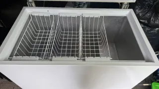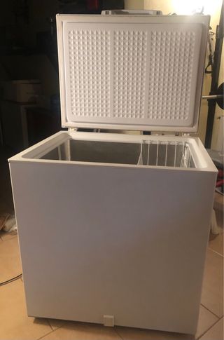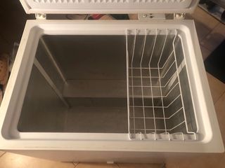 Arcón congelador de color blanco, con tapa abatible y cesta interior. - Diseño moderno y funcional. - Cesta metálica para organizar alimentos. Caracteristicas: Altura: 86cm Ancho: 80cm Profundidad : 60cm Se vende por poco uso