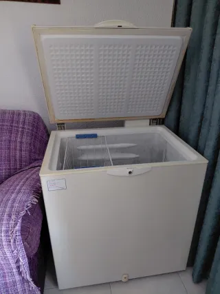 Arcón congelador de la marca Ignis, modelo ICF220. -En las fotos se puede apreciar que lleva cerrojo, pero las llaves se perdieron hace tiempo, asi que si no cambias bombín, no sirve. -Tiene ligeros desperfectos esteticos que no afectan a su funcionamiento como en la foto 3. -Tiene sus añitos, pero funciona perfectamente. -Medidas: 86Alto x 80Ancho x 60Fondo cm -Capacidad bruta: 215 litros -Capacidad de congelación: 12,5 kg / 24 h -Consumo: 75 W (≈0,94 kWh/día) -Capacidad total: 212 litros (≈unos 212 kg de alimentos, dependiendo del tipo y densidad) Actualmente esta encendido y en funcionamiento. No me urge venderlo. No mareantes.
