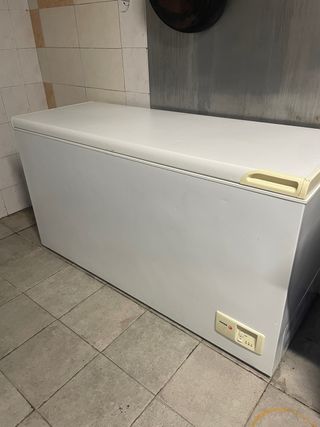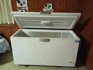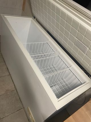 Congelador horizontal de color blanco. - Funciona perfectamente.Demasiado grande para lo que necessito actualmente. - Se encuentra en el garaje a nivell de la calor, abrir la Puerta y cargar.