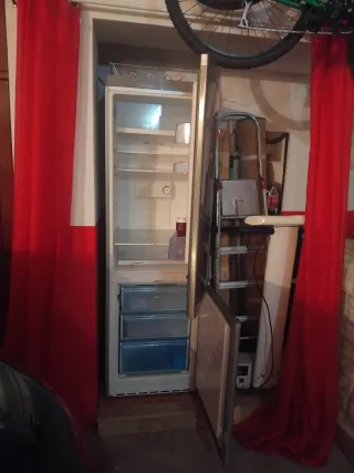Nevera combi de gran capacidad, ideal para familias o para quienes necesitan espacio extra. - Diseño interior espacioso. - Estantes de cristal. - Cajones transparentes. Funciona perfectamente enfría muy bien y el congelador también. La vendo por cambio de cocina El precio es algo negociable