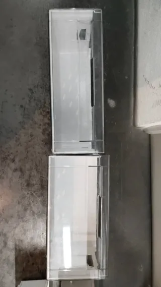 3 cajones para congelador Liebherr de ancho especial 75 cm 2 son iguales 34 cm fondo y uno tiene menos fondo 26.5 cm (zona del motor del frigorífico congelador) Largo 58 cm porque van en el interior pero el congelador es el de ancho grande, de 75 cm Alto 18.5 cm los tres -Fabricados en plástico blanco. -Frente transparente Y 2 baldas de cristal transparente que van bajo los cajones (58x25.5) 15€ cada pieza Y si compras todo: 65€ las 5 piezas!!! Buen estado