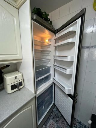 Frigorífico combi Bosch en muy buen estado y perfecto funcionamiento • Altura: 1,90 m • Ancho: 70 cm • Acabado en acero inoxidable • Congelador: 3 cajones + bandeja Se vende por cambio de electrodomésticos en la cocina. 👉Se puede ver sin compromiso! 📦 Recogida a cargo del comprador. Ayudamos a cargar!!