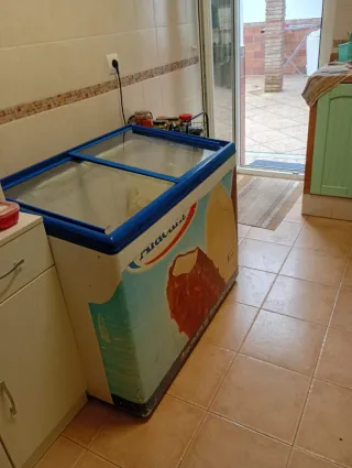 Arcón congelador en perfecto estado de funcionamiento...se rompió un cristal de una corredera,se ha usado con un metacrilato pero el cristal cuesta 12/15 euros - Ruedas para facilitar el desplazamiento.
