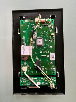 Placa de control Fagor con pantalla. - Diseño moderno en color negro. - Botones táctiles para menú, ajuste y confirmación.