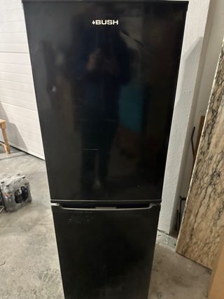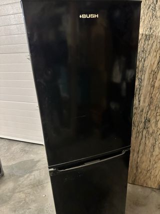 Frigorífico combi en color negro de la marca Bush. Dispone de dos puertas, una para el frigorífico y otra para el congelador. Tiene algunos golpes visibles como se ve en la foto. Funciona perfectamente tanto la parte de frigorífico como el congelador - Color: Negro - Marca: Bush - Tipo: Combi (frigorífico y congelador)