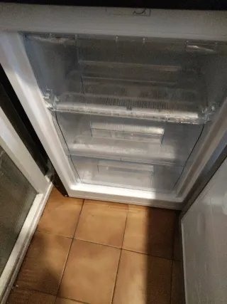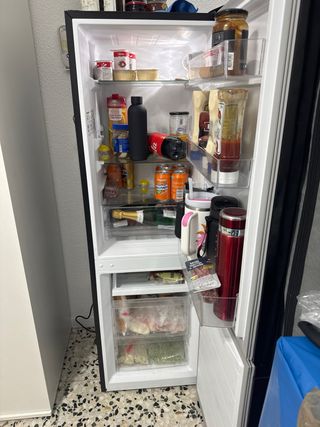 Frigorífico Hoover en color negro, con solo 1 año de uso. Se encuentra en buen estado. - Diseño moderno y elegante. - Amplio espacio interior. - Congelador con 3 cajones. -Tiene un pequeño bollado en la puerta del congelador, afecta de forma mínima a nivel estético.