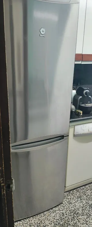 Nevera combi de la marca Indesit, modelo Balay con tecnología No Frost. Su acabado es en color plateado. - Tecnología No Frost. - Diseño combi (congelador abajo). - Acabado plateado. - Garantía de 3 meses