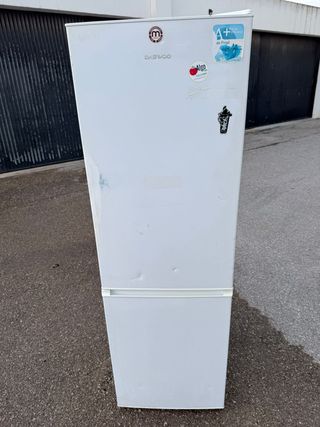 Frigorífico combi de color blanco, marca Daewoo, ideal para uso doméstico, oficinas o como equipo de apoyo en hostelería. Es un modelo fiable que destaca por su tecnología de enfriamiento y su eficiencia energética. Tecnología No Frost: Sistema que evita la formación de escarcha y hielo, lo que elimina la necesidad de descongelación manual y mantiene los alimentos frescos por más tiempo. Eficiencia Energética A+: Clasificación de bajo consumo, lo que ayuda a reducir el gasto eléctrico mensual. Diseño Combi: Configuración con refrigerador en la parte superior y congelador en la parte inferior, optimizando el acceso a los productos
