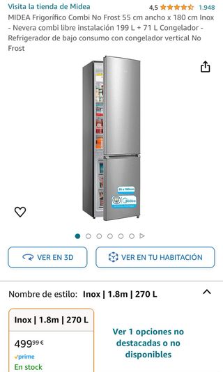 Frigorífico Dos Puertas Inox ❄️✨ ✅️ Vendo frigorífico de dos puertas con acabado en acero inoxidable. ✅️ Tiene 1 año de uso y se encuentra en excelente estado de funcionamiento. ¿Por qué es una gran oportunidad? ✅️ Garantía de tranquilidad: 3 años de garantía oficial!. ✅️ Tecnología No Frost: Olvídate de la escarcha en el congelador. ✅️ Ahorro energético: Clasificación energética E con un consumo muy bajo (196 KWh/año). ✅️ Panel de control digital: Manejo sencillo e intuitivo desde el exterior. ✅️ Seguridad: Incluye alarma de puerta abierta para evitar que se pierda el frío.